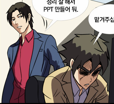 반대로 병철이는 사랑 많이 받은 집안에서 자라와서 그런지 면접 편 보면 엄청 자존감 뿜뿜 넘쳤는데 송대리의 갈굼에 의해서 조금 자낮이 되는 경향이 있습니다.